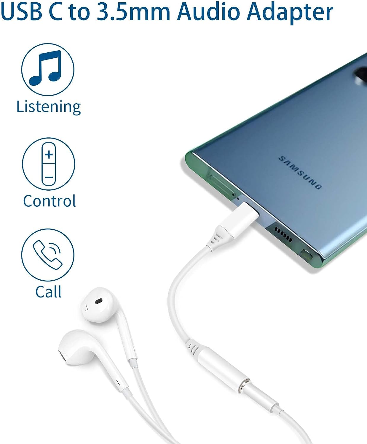 Funcionalidad de audio completa: el adaptador USB C a conector de auriculares soporta contestación de llamadas, micrófono, controles de volumen a través de auriculares con cable y pausa u omite una pista. Este adaptador auxiliar a USB C conserva todas las funciones de los auriculares. Al igual que estás acostumbrado a escuchar música, ver videos o chatear. (Nota: los auriculares Apple con conector de 3,5 mm no son compatibles con controles de micrófono/volumen)