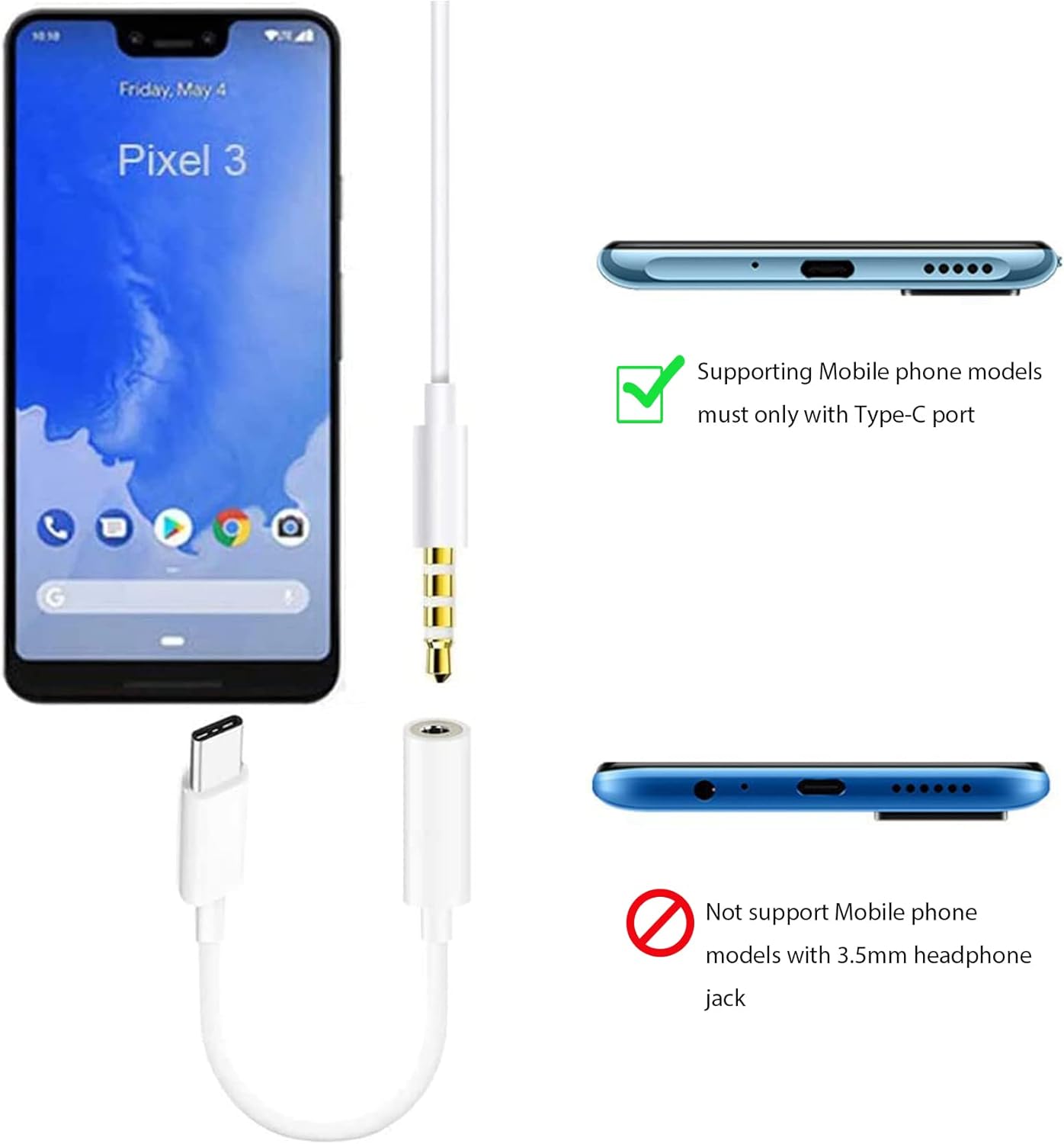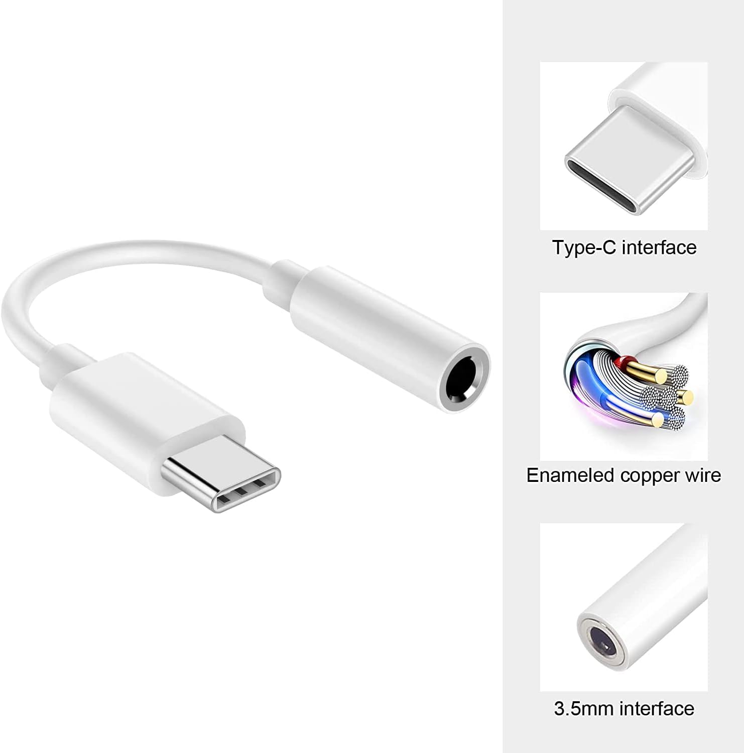 Compatibilidad universal: este adaptador de auriculares de 3,5 mm a USB C es compatible con la mayoría de teléfonos y tabletas USB-C.