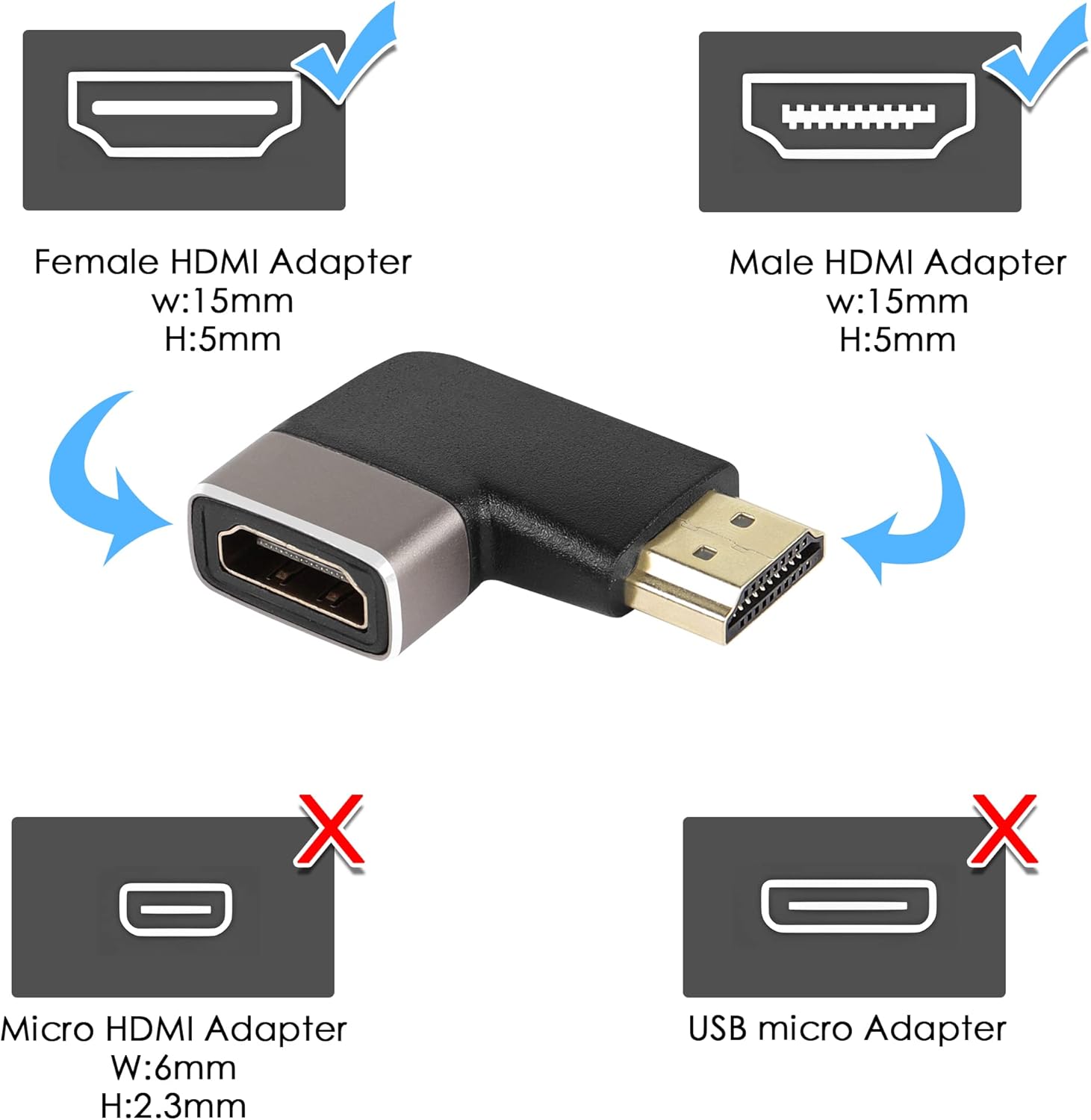 Adaptador HDMI 2.1 Macho a Hembra 90°,AD194