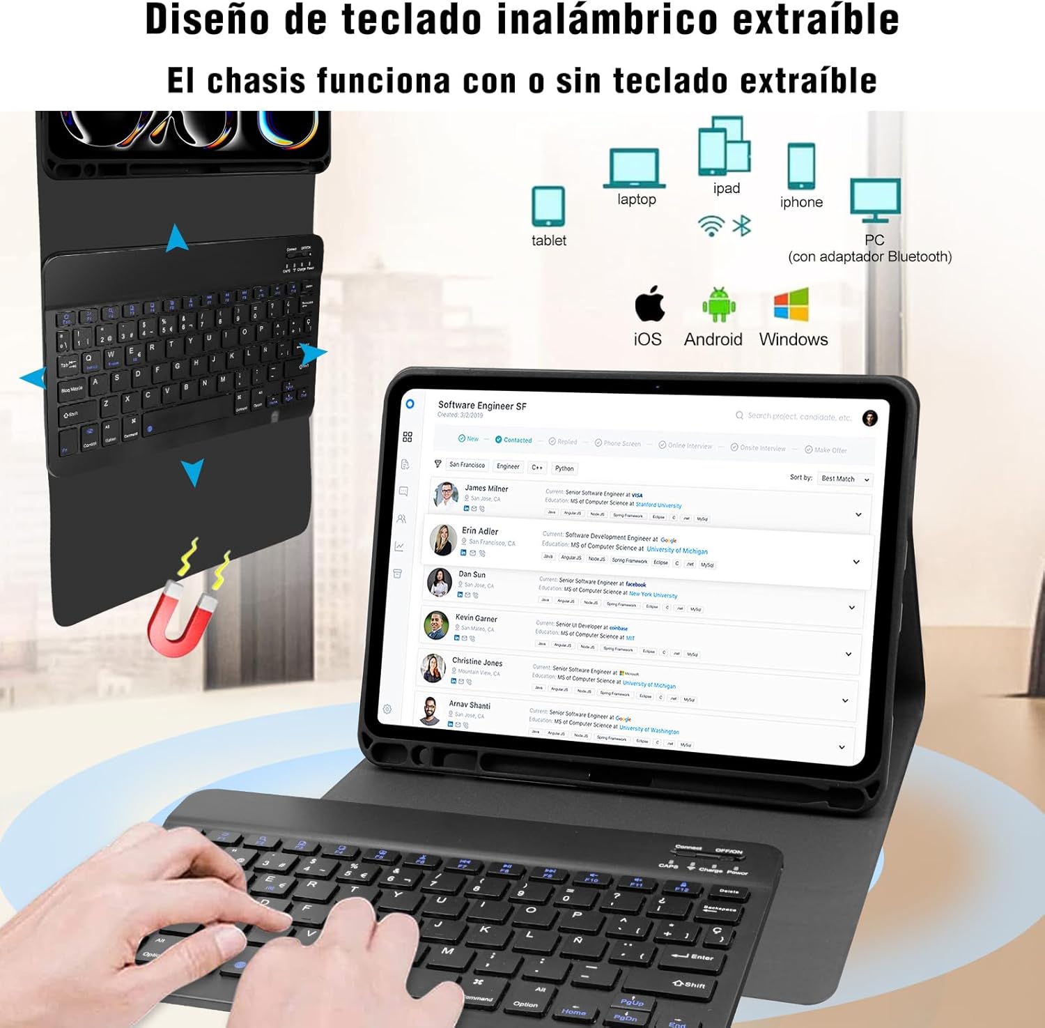 FGNS.Funda con Teclado Español Ñ Inalámbrico Bluetooth para iPad 10.2 pulgadas ,FPM407