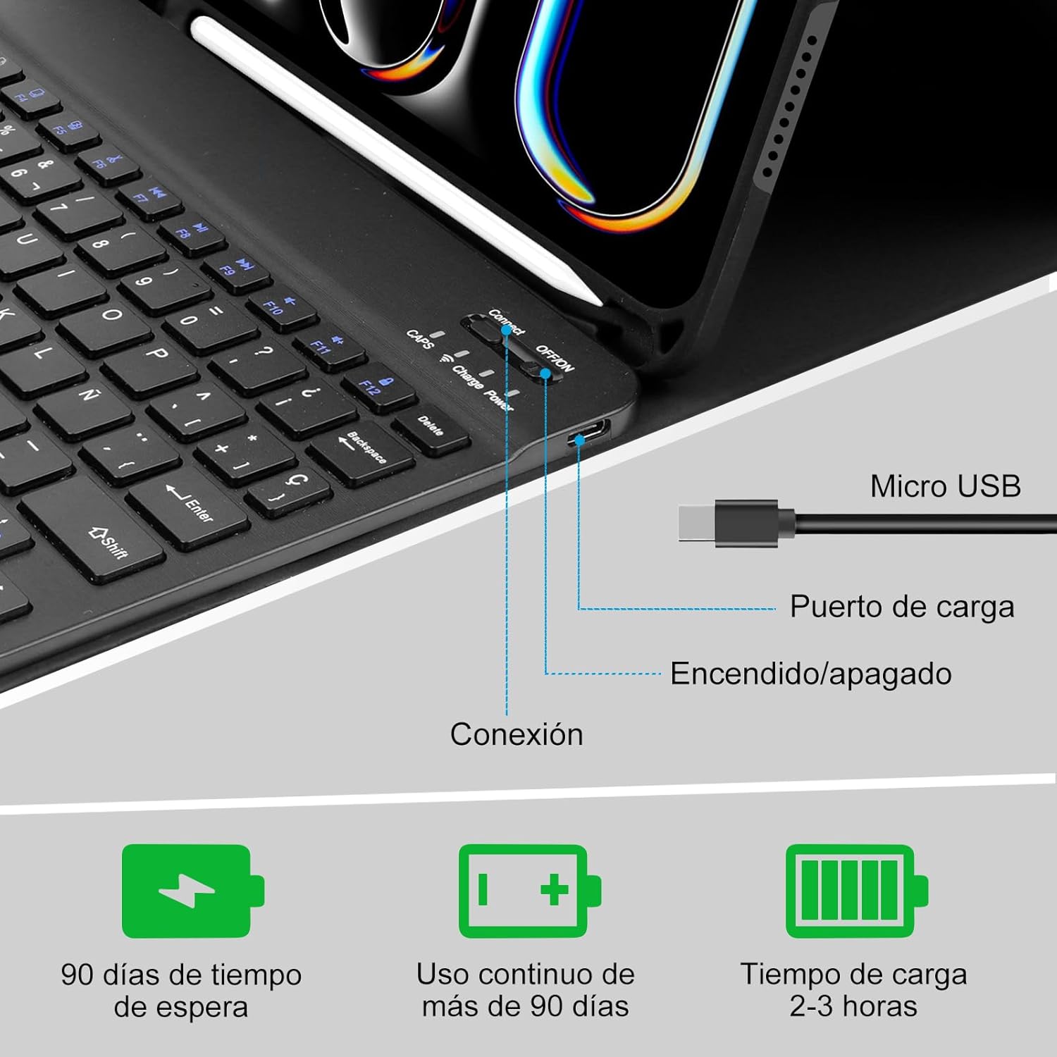 FGNS.Funda con Teclado Español Ñ Bluetooth para iPad Pro 12.9 pulgadas,FPM404