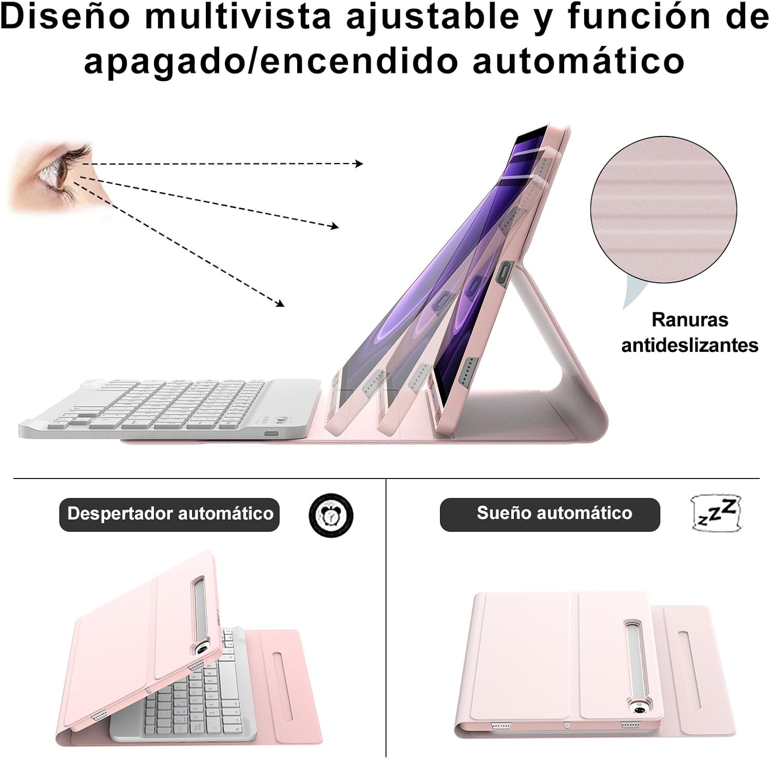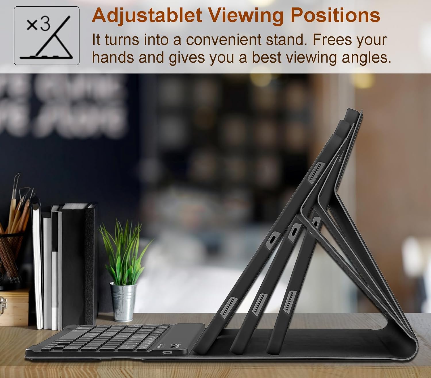 【Múltiples ángulos y Soporte de Bolígrafo】Este Funda iPad pro 13 con teclado ofrece 3 ángulos ajustables, que admiten ángulos de 110°, 120° y 130°, el ángulo de visión se puede ajustar según sea necesario, y puede obtener una experiencia de escritura ergonómica, ya sea que esté trabajando en un escritorio o viendo videos en el sofá. El estuche del Funda teclado iPad pro 13 tiene una ranura para lápiz para que pueda llevar su pluma de tableta con usted.